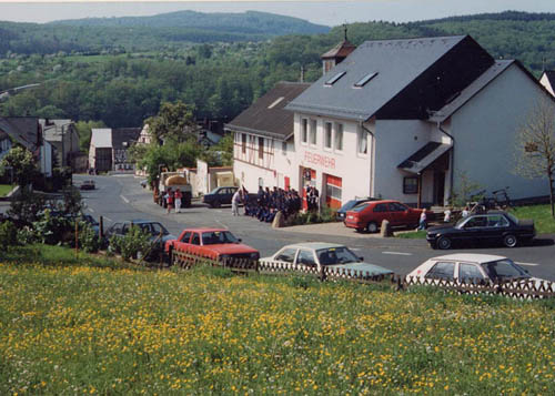 Leica R4 Foto: Dieter Stahl Vor ihrem schmucken Feuerwehrgerätehaus sind die Feuerwehrleute angetreten.